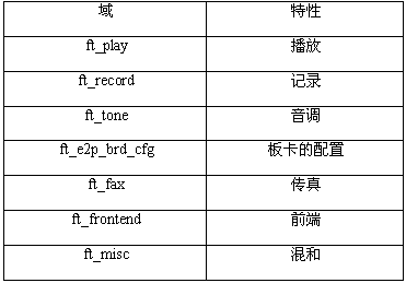 想要?jiǎng)討B(tài)的判定所有的語音資源的播放和錄制功能,可以使用dx_getfeaturelist()語音API函數(shù)。在語音API的頭文件dxxxlib.h中定義了用FEATURE_TABLE數(shù)據(jù)結(jié)構(gòu)中的某個(gè)字段代表的特性。ft_play字段包含的一個(gè)位掩碼指定了一個(gè)特定的語音設(shè)備支持的播放特性。ft_record字段包含的一個(gè)位掩碼指定了一個(gè)特定的語音設(shè)備支持的錄音特性。