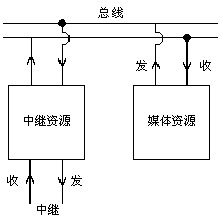 如果使用全雙工連接,兩種資源之間有雙向的路由,如下圖所示。每一種資源偵聽其他資源的傳輸,典型的情況如媒體和中繼設備之間的相互路由: