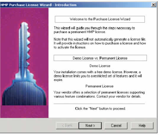 2. 在HMP許可證管理器窗口中(圖16),點(diǎn) How to Purchase License...按鈕。HMP購(gòu)買許可證導(dǎo)航將出現(xiàn)(圖17)。該向?qū)⒁徊讲街笇?dǎo)你購(gòu)買一個(gè)永久的HMP許可證。